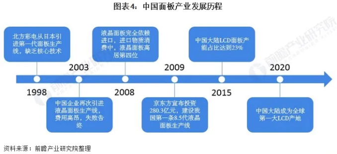 至2008年,中國液晶面板仍完全依賴進口,甚至中國每年的進口物資消費排行中,液晶面板僅次于石油、鐵礦石、芯片,而位居第四位。