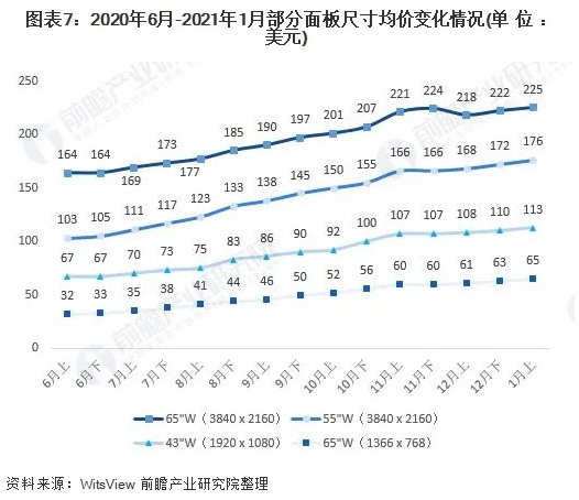 根據WitsView新報價,55"W(3840 x 2160)面板均價已經由2020年6月的103美元漲價至2020年1月上旬176美元,短短7個月漲了73美元。