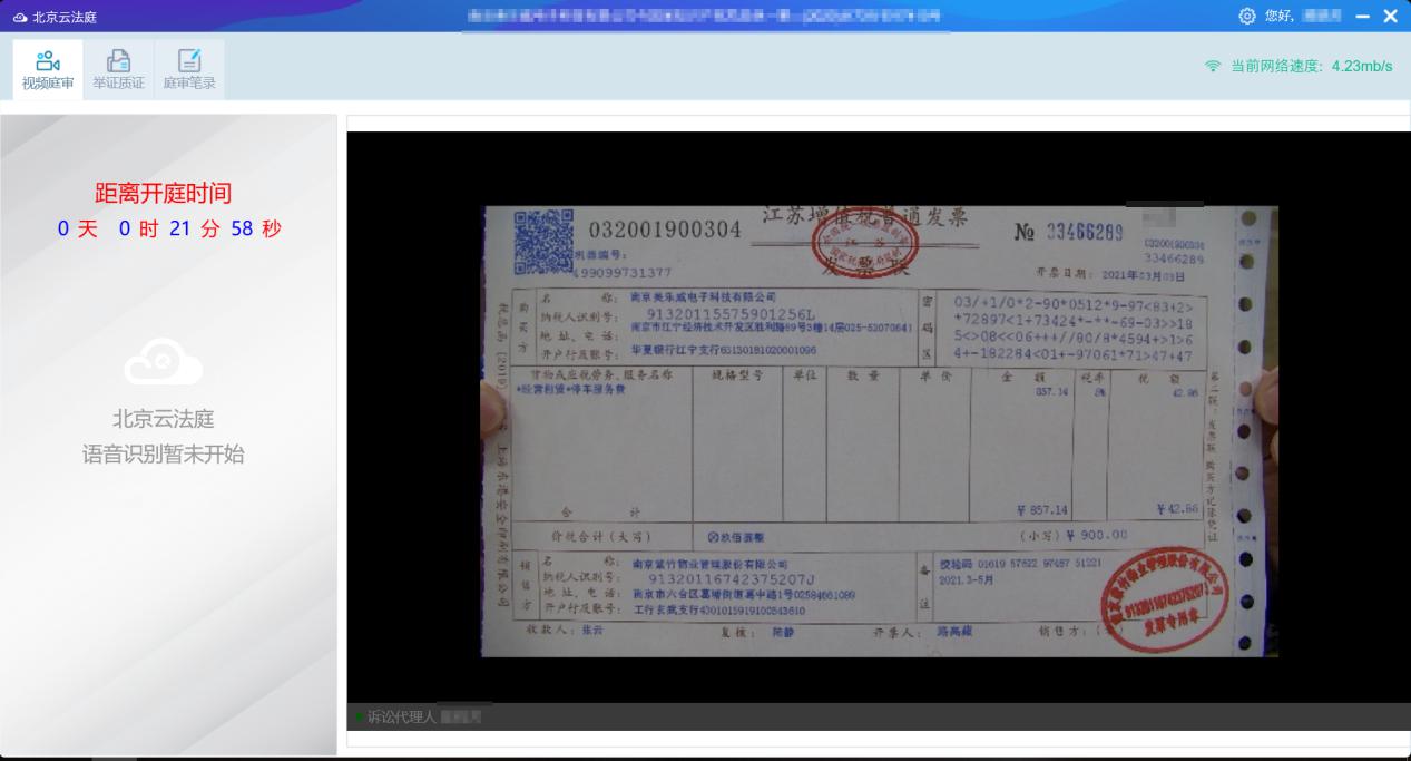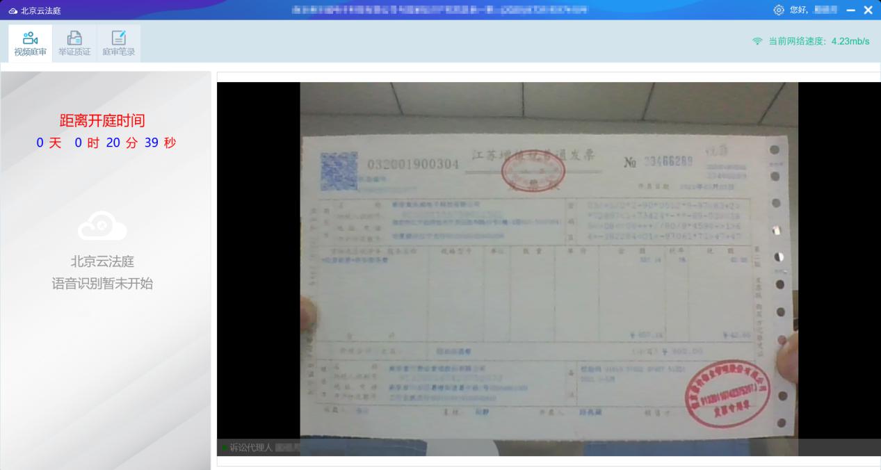 7、線上開庭效果對比展示。如下是“北京云法庭”舉證效果展示,以發(fā)票單據舉證為例: