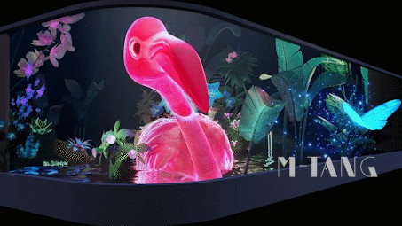 由利亞德(成都)文旅科技、利亞德·藍(lán)碩科技攜手M-TANG出品的裸眼3D公共媒體藝術(shù)位于成都府河與南河交匯處——合江亭。不同于成都太古里大屏的商業(yè)屬性,合江亭裸眼3D屏處于市政公園之中,是一個(gè)純粹的公共藝術(shù)媒體裝置。項(xiàng)目圍繞象征愛(ài)情的火烈鳥(niǎo)展開(kāi)創(chuàng)意,營(yíng)造了一個(gè)火烈鳥(niǎo)的自然棲息地,一個(gè)奇妙的立體景觀:異于尋常的大型火烈鳥(niǎo)被屏幕外飛舞的蝴蝶吸引,沖出屏幕的結(jié)界將蝴蝶帶入花園。
