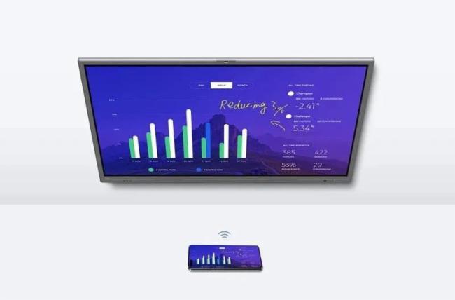 華為手機下拉菜單投屏按鈕,支持和皓麗會議平板一鍵投屏,在華為Csat+Kit技術支持下,會議平板界面可以實現對手機的鏡像反控,在大屏打開手機相關App、操作游戲、看圖、搶優惠券、畫畫等,非常方便。
