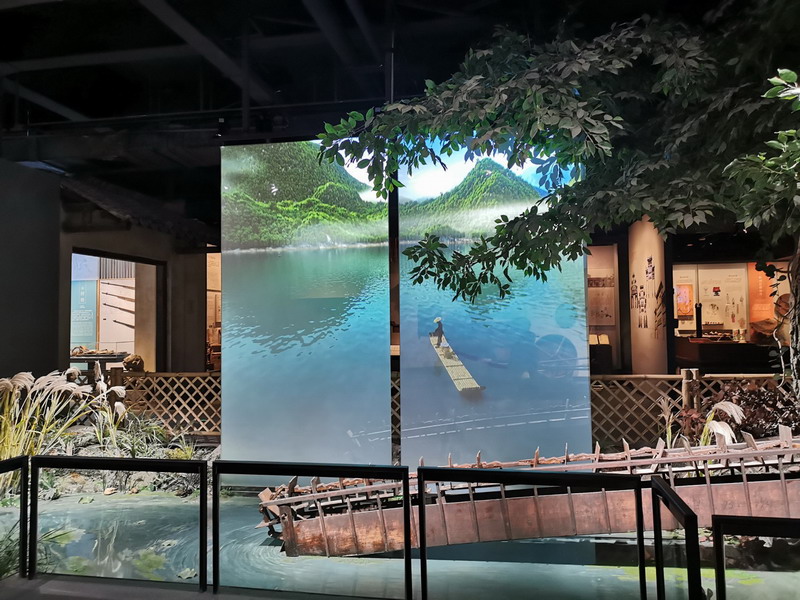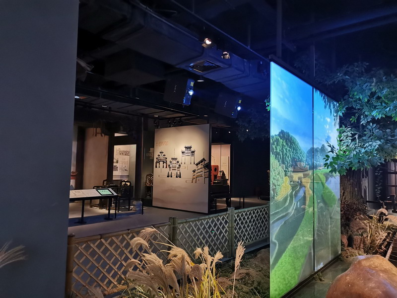 秀美株洲,人杰地靈。四層的民俗文物展,以生動且富有吸引力的場景復原和實物陳列,再現舊時的生活生產場景,留住時代底色,傳承民俗文化。在農耕民俗展區,由2臺PX803UL-BK+通過雙機背投的方式在全息透明幕上打造的畫卷式投影,畫面清新唯美,景色秀麗迷人。其中,漁民泛舟江上、農民下田勞作的情景與展廳布置渾然一體,令參觀的觀眾心曠神怡,仿佛置身于江南的大好風光中。