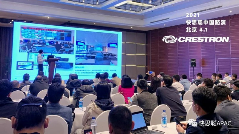 北京凱賓斯基飯店的宴會廳里座無虛席?焖悸斨袊技術團隊向受邀參加路演的一百二十多位快思聰合作伙伴演示了全新的 Crestron 產(chǎn)品,解決方案和服務理念。