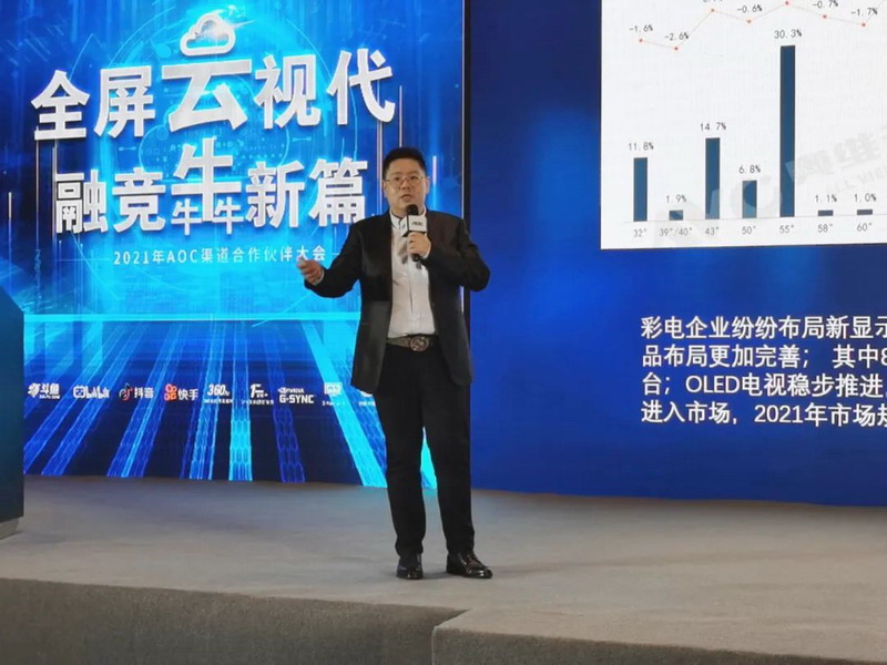 AOC TV/B2G銷售總經理陸一喬先生現場解析TV全新產品布局及渠道規劃。他表示,2021年彩電企業紛紛布局新顯示技術產品,miniLED、OLED、8K產品布局更加完善,AOC TV亦會推出相應的新品,進而把握市場機遇。同時,AOC TV將著力于從“行業”、“網銷”、“游戲”三大渠道進行全新布局,以此實現“多點突圍”!