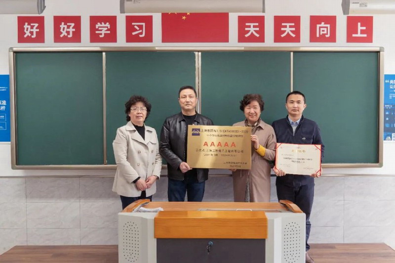 這是該標準的制定單位授予的首批AAAAA教室照明榮譽牌匾。