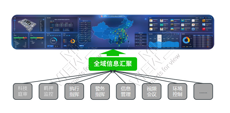 支持各類安防報警監控接入、庭審核系統、遠程執法指揮系統、遠程視頻會議系統接入、各類業務數據接入、GIS地理地圖接入、大數據可視化綜合應用接入、移動單兵接入等。