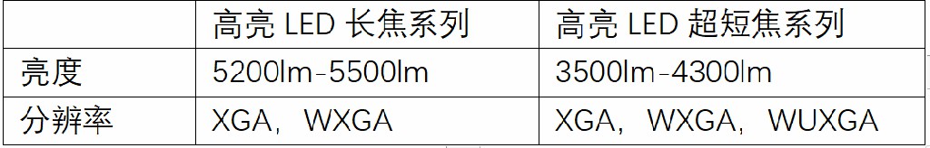 •小結:Panasonic 高亮LED系列投影機的高亮LED光源也被叫做HLD光源,該光源主打愛眼護眼特點。該系列型號的亮度多,分辨率齊全。適合各種娛樂教學、教師培訓會議等情景使用。