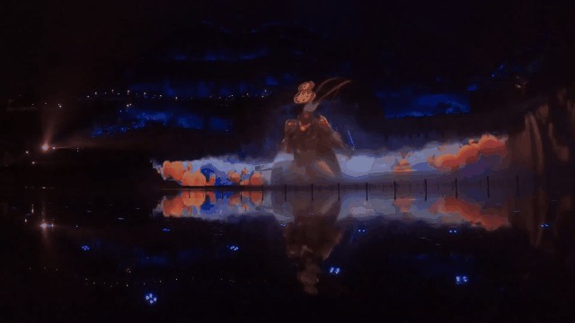 “無人化演出”并非字面上理解的沒有任何演員的參與。在本次光影秀中,融入了《貴妃醉酒》、《紅綢漫卷》、《把酒言歡》,三段涵蓋古典舞、民族舞和街舞的原創舞蹈表演,并穿插《瑤池盛會》、《郎酒勞軍》兩段動畫、影視風格短片。此間,均有專業演員的加盟和出演,但他們并不親臨現場,而是依靠影像后期技術和制作團隊的豐富想象,創造出奇幻、唯美、震撼的視聽體驗。