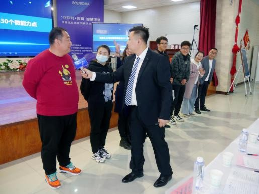 希沃寧夏區域售前顧問米建輝匯報了希沃年度最新產品,聚焦課堂書寫的希沃交互智能平板高精度紅外系列、突破傳統廣播局限的希沃區校一體化廣播系統、讓黨群服務工作與新時代需求并行的希沃智慧黨建解決方案、聚焦互聯互通教室環境打造的希沃物聯平臺等,涵蓋課堂互動應用、校園文化展示、教學形態創新等多個應用層面。