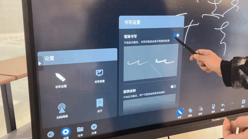 東方中原的書寫白板功能同樣十分強大,書寫體驗極佳,僅有7ms的延遲,幾乎無法察覺,精度更是只有驚人的±1mm誤差。雙手寫筆支持多人同時書寫,方便團體成果展示。平板預設了粗、中、細3種筆觸,還可以在手寫筆兩端進行分別設置,再加上不同的顏色設置,使得不同筆跡區(qū)分明顯,能一眼看到會議重點。