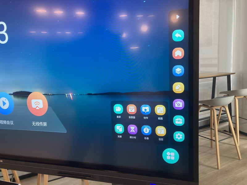 首先體現(xiàn)在其豐富的接口設計上,側方帶有3個HDMI輸入,一個HDMI輸出,可以同時接入多路視頻信號,并且方便地可把顯示畫面共享出去。3個USB-A 安卓和windows共用接口,前置兩個全通道USB-A接口,不同信道傳輸資料信息,讓用戶傳輸數(shù)據(jù)便捷體驗發(fā)揮到了極致。不僅如此,還配備了無線傳屏器,將無線傳屏器連接筆記本,就可以直接將電腦內(nèi)容無線投屏至平板上,方便快捷,擺脫有線束縛。