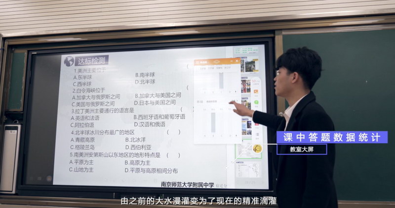 對(duì)于智慧課堂帶來的變化,地理老師羅春也深有感觸:“智慧課堂讓我感受到了精準(zhǔn)教學(xué)的好處,它讓我們老師由之前大水漫灌式的教學(xué)方式,變成了現(xiàn)在的精準(zhǔn)滴灌,對(duì)每個(gè)學(xué)生的整體情況有了更深一步的精準(zhǔn)化理解,更清楚了解每個(gè)層次學(xué)生的需求。”在自己的課堂上,地理老師羅春常常會(huì)給學(xué)生推送隨堂測題,并且當(dāng)場就能收集到學(xué)生的答題情況,更有利于及時(shí)掌握不同學(xué)生的理解水平,對(duì)后期的精準(zhǔn)備課起到重要作用。
