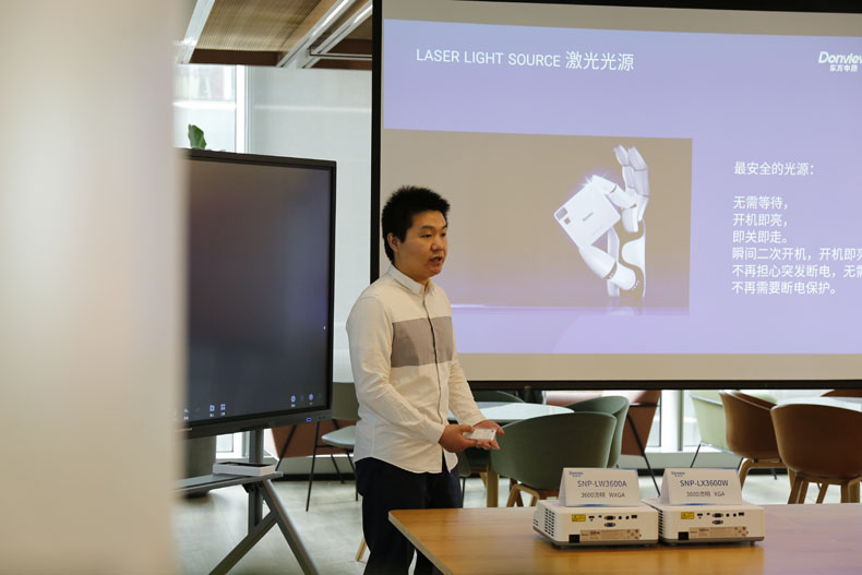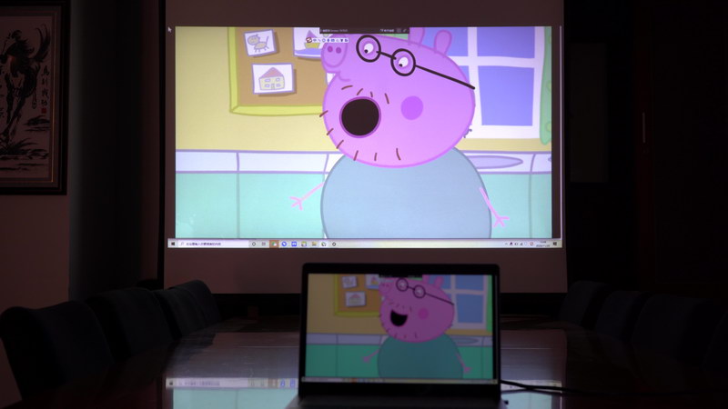 從參數表上看,索諾克長江系列激光商務投影機從3200流明到3600流明的高亮度,同時搭配DLP顯示技術,畫面整體黑白過渡更加銳利,文字看起來更清晰。更有10bit色位深度編碼、自帶的垂直梯形校正功能,最大化保證內容的完整性,讓畫面質感提升一個等級。在實際體驗過程中,我們進行了開燈與關燈等條件下的多種環境測試。我們發現即使在開燈的情況下,索諾克長江系列激光商務投影機表現依然很優秀,外部環境光線對它的投影效果效果不是很大。開燈條件下,我們還模擬了開會人員從會議室各個角度進行觀看,投影畫面(圖像和文字)都清晰可見。