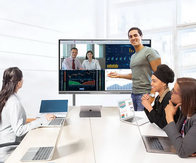 不管是與總部或公司其它分隔各地的部門人員,又或是與距離較遠的客戶進行事務溝通,在線遠程視頻會議無疑是極佳的解決方案。借助AOC智能會議平板進行多方在線視頻會議,可以有效跨越空間,告別差旅奔波,使異地輕松交流,并提高溝通效率。最主要的是,在召開線上視頻會議時,分別處于不同場景下的多臺會議平板,可以有效進行云白板共享與互聯,進而實現更高效的會議協作。