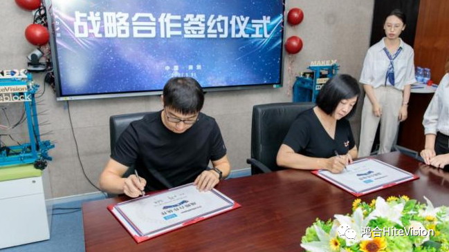 每一步都在前行與創造發展的鴻合科技,于2021年5月31日,在友好融洽的氛圍下,鴻合科技與童心制物(makeblock)公司開展了戰略簽約儀式,共同打造教育領域AI創客教育特色。
