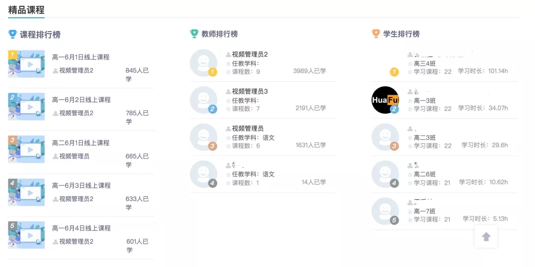 通過數(shù)據(jù)管控系統(tǒng),學(xué)校管理者可以清晰地看到每個年級的開課進(jìn)度,以及學(xué)生的學(xué)習(xí)情況。由此,華南師大附中的在線教學(xué)工作,形成了教、學(xué)、練、測、評、管的完整閉環(huán)。
