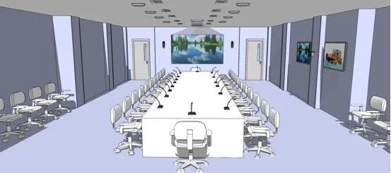 隨著電腦技術的發展,多媒體視頻系統已成為現代會議系統不可或缺的部分,其內容主要包括可聯電腦的投影系統,智能白板等,以滿足現代化信息交流的需要。通過它可以把已有的其他信號,如閉路電視,廣播電視、網絡電視會議信號等送入該多媒體會議系統;還可把每個會場的多媒體會議信號送出到網絡出口,進行網絡電視會議交流。