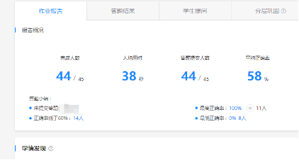 老師通過教師空間挑選資源,將習(xí)題推送給學(xué)生進(jìn)行練習(xí),學(xué)生在平板上答完題后,老師可在作業(yè)報(bào)告上查看學(xué)生們的作答情況。通過線上能夠及時(shí)看到學(xué)生的完成情況、答題正確率,讓線上教學(xué)也能夠精準(zhǔn)把握到學(xué)生的復(fù)習(xí)進(jìn)度。