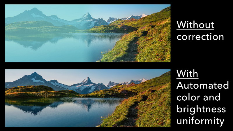 在投影機陣列中,您需要調(diào)節(jié)不同投影機的色度和亮度以追求均勻的效果,從而確保觀眾不會看到投影機之間的混合區(qū)域。而這項工作既充滿挑戰(zhàn)又費時費力,如果使用的投影機新老不一,那更是雪上加霜。Mystique 全新的色度與亮度均勻性自動調(diào)節(jié)功能讓您可以一鍵快速調(diào)節(jié),發(fā)揮基于攝像頭的準確度,呈現(xiàn)出一幅無縫圖像。