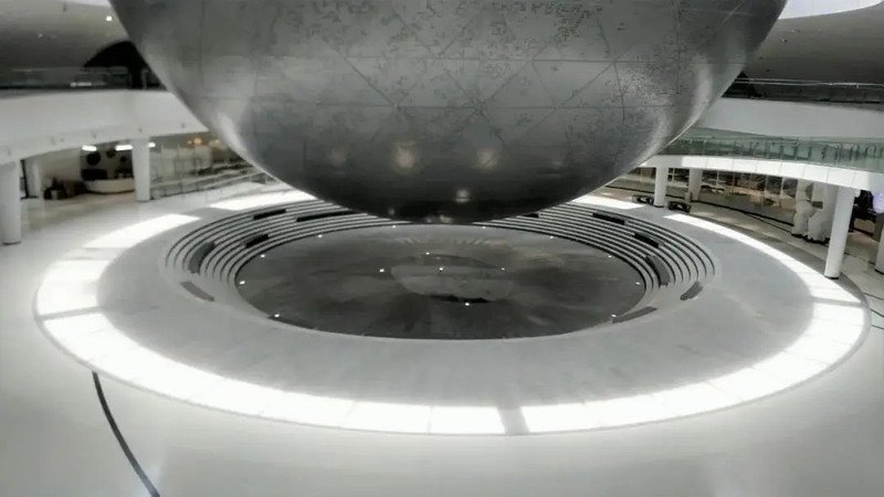 其建筑外形設計獨特,圓洞天窗、球幕影院、倒轉穹頂三個圓形元素構成太陽、地球和月亮的“三體”結構,建筑螺旋形態構成“天體運行軌道”,這不僅展現了天文學概念,而且可以真實追蹤太陽在天空中的運動,使整個建筑成為一件可以表現時間流逝的大型天文儀器。