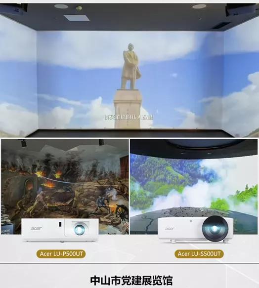 中山市黨建展覽館以黨的領導和建設為主線,精選圖文、視頻、實物等珍貴歷史素材,輔以聲、光、電等先進技術手段,生動展示中山黨組織百年奮斗歷程,以及在黨的領導下山人民創造的經濟社會發展成就。作為全球第四大投影機品牌Acer宏碁,此次7臺宏碁激光工程投影機LU-P500UT、6臺激光短焦投影機LU-S500UT進駐中山市黨建展覽館,打造沉浸式大屏影像,數字化展現百年歷程中的珍稀影像。