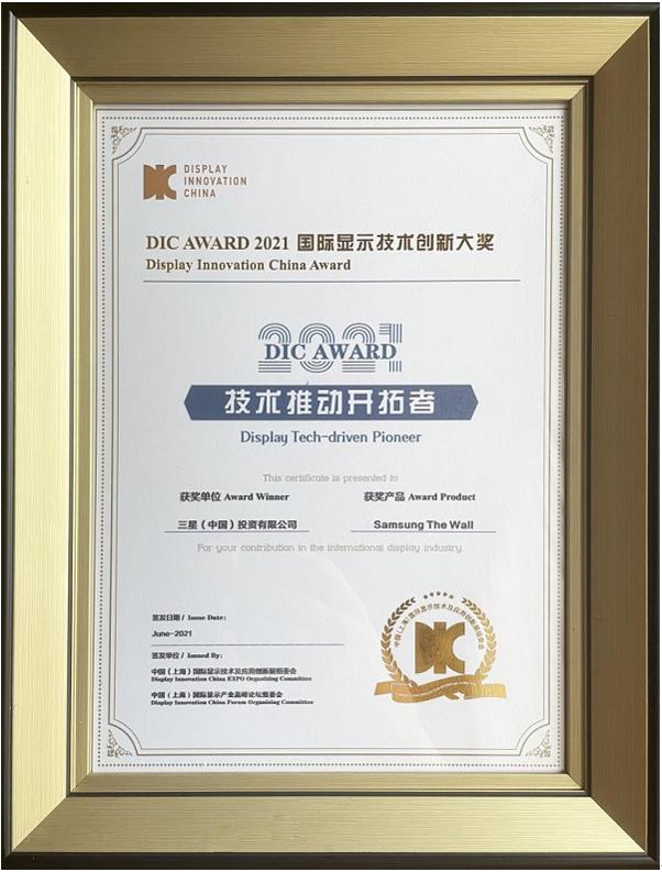 經(jīng)嚴格評審,三星創(chuàng)新的模塊化產(chǎn)品The Wall摘得“DIC AWARD 顯示技術(shù)推動開拓者”獎項。憑借領(lǐng)先的科技創(chuàng)新實力,三星商用產(chǎn)品屢獲國際、國內(nèi)大獎,僅The Wall就曾獲得2021年CES(國際消費電子展)“創(chuàng)新獎”、信息顯示協(xié)會“年度顯示產(chǎn)品”、華顯獎“2019年度 Micro LED顯示創(chuàng)新產(chǎn)品獎”等多項行業(yè)大獎。