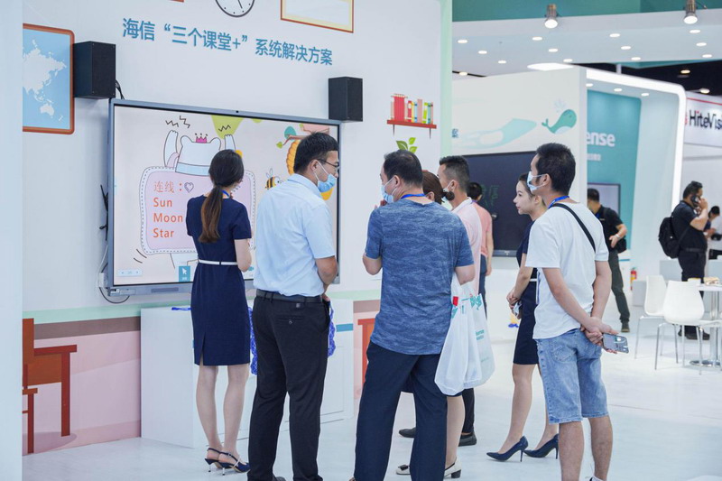 作為本屆展會的獨(dú)家冠名單位,海信商用顯示公司擁有最大的展區(qū),展區(qū)面積超300平,參展產(chǎn)品有海信交互式觸控一體機(jī)、智慧黑板等,產(chǎn)品涵蓋普教、高職教、教培等多個(gè)領(lǐng)域,產(chǎn)品形態(tài)從簡單的交互智能平板擴(kuò)展到教學(xué)場景及系統(tǒng)解決方案、教學(xué)輔助設(shè)備等。解決方案如“三個(gè)課堂+”系統(tǒng)解決方案、校長辦公室建設(shè)方案、智能語音轉(zhuǎn)寫解決方案、海信智慧課堂系統(tǒng)解決方案、高校智慧雙屏系統(tǒng)解決方案、教培云課堂系統(tǒng)解決方案、校園信發(fā)集控系統(tǒng)解決方案、智慧黨建活動室解決方案等悉數(shù)亮相。