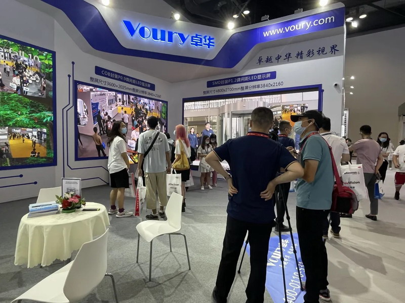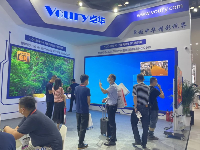 Voury卓華是業界領先的大屏幕顯示及拼接控制整體解決方案提供商,本屆展會主打應用場景現場模擬,現場共展出包括COB封裝LED顯示屏、SMD封裝LED顯示屏、LED智慧交互屏&LED智慧會議屏在內的多套拼接大屏幕進行展示,獲得來自業內、政府以及學術界的海內外參觀者的踴躍支持。