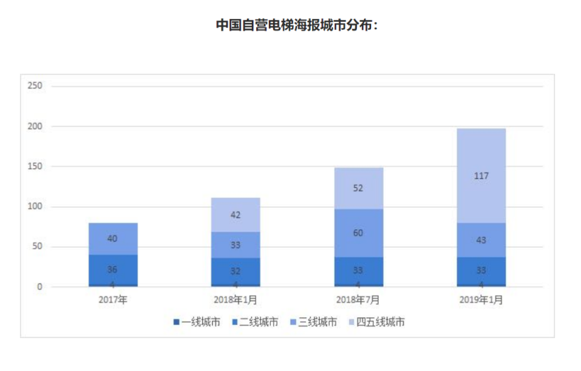 近年來,三四線城市憑借其巨大的發(fā)展?jié)摿Γ蔀楸姸嗥放凭蚪鸬男率袌觯瑱?quán)威機構(gòu)表明,目前三四線城市人均可支配收入,已經(jīng)相當于北京市2007~2010年的水平。而新一輪的消費升級也讓廣告主開始關(guān)注有錢、有閑的小城受眾群體。相關(guān)機構(gòu)預(yù)測,電梯媒體5年后的市場規(guī)模有望達到現(xiàn)在的2~3倍。