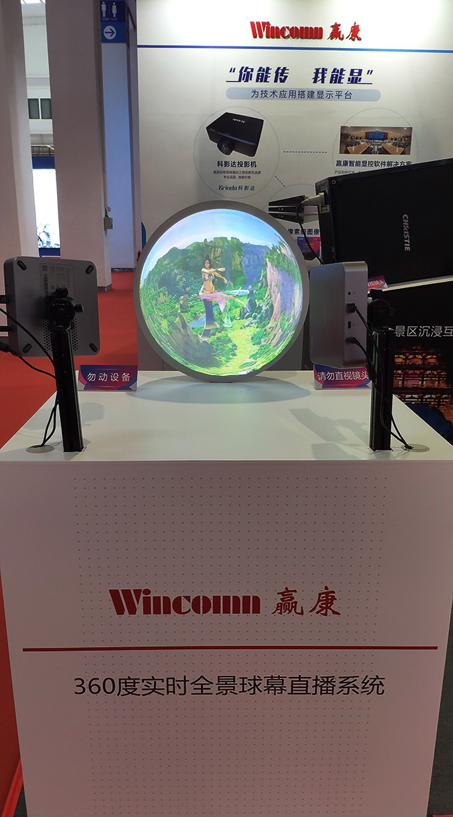 展會現(xiàn)場,贏康還帶來了實時全景攝像采集系統(tǒng)+球幕直播顯示系統(tǒng),適用于各種實時創(chuàng)意展示場景。