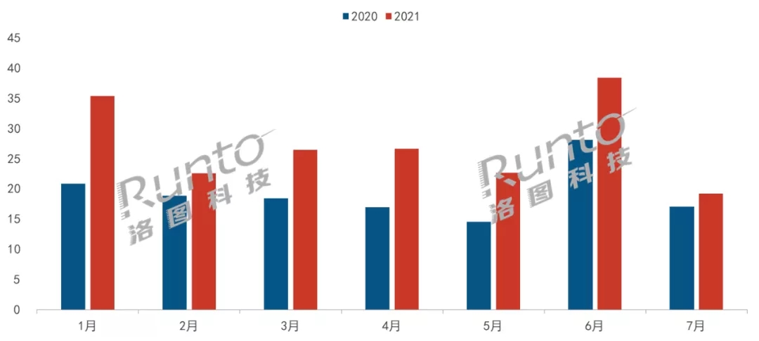 根據(jù)洛圖科技(RUNTO)最新的《中國智能投影零售市場月度追蹤(China Smart Projector Retail Market Monthly Tracker)》報告,2021年7月中國智能投影市場(不含激光電視)線上銷量為19.2萬臺,同比增長13%,環(huán)比下降50%;銷額為4.2億元,同比增長27%,環(huán)比下降59%。作為普及型的市場,銷售同比維持增長;大促過后市場趨于平淡,同時缺芯的影響進一步發(fā)酵,環(huán)比大幅下降。