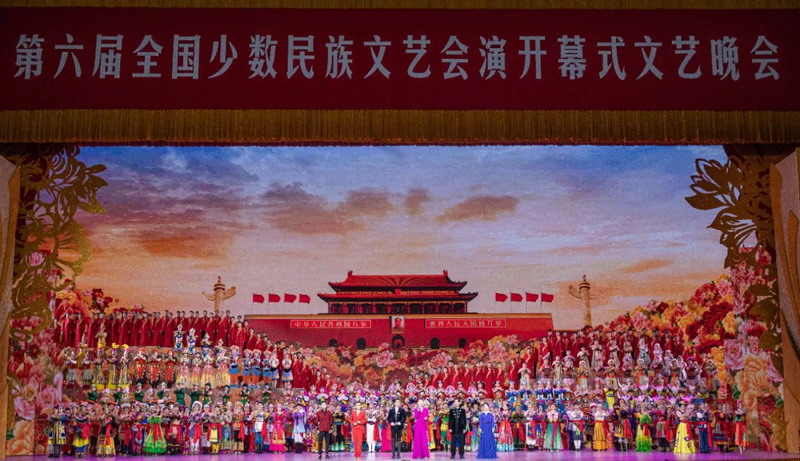 歌聲飛揚,禮贊幸福生活;舞步歡騰,抒發壯志豪情。第六屆全國少數民族文藝會演開幕式文藝晚會于8月31日晚在京隆重舉行。習近平、李克強、汪洋、王滬寧等黨和國家領導人同約3000名群眾一起觀看晚會。