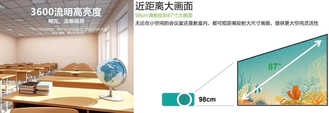 T421D商用短焦投影機擁有3600流明高亮度以及20,000:1的高對比度。同時通過Extreme Eco節能技術可節省70%的功耗,延長燈泡壽命至10000小時。高壽命、低維護成本和24分貝低噪音的優勢,能夠為長時間劇本殺游戲保駕護航。