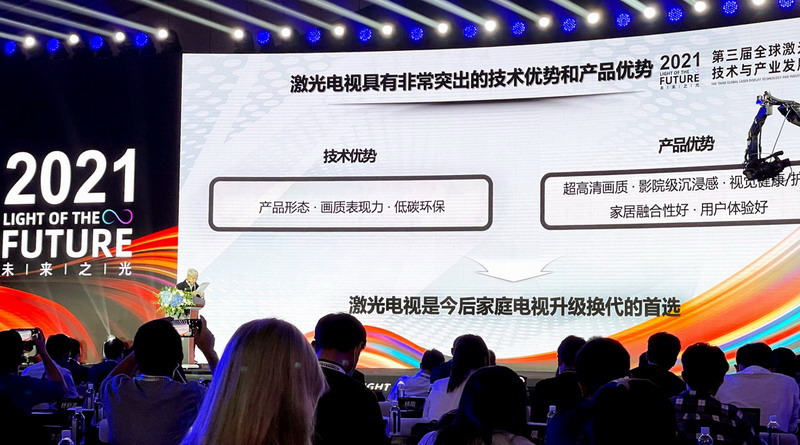 “激光電視在產品形態、畫質表現力、低碳環保等多方面的技術優勢,使其有著超高清畫質、影院級沉浸感、健康護眼、家居融合性好和用戶體驗好等產品優勢,是今后家庭電視升級換代的首選”。中國工程院院士許祖彥9月16日在第三屆全球激光顯示技術與產業發展論壇上力陳激光電視獨特優勢并現場推薦,他同時指出,與其他新型顯示技術相比,激光顯示具有明顯的差異化技術優勢,將成為下一代顯示產業的主流,實現顯示產業的升級換代!