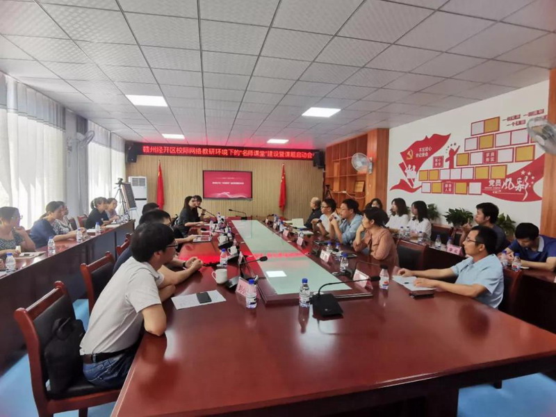 華中師大鄭旭東教授及博士生團隊、贛州市教師發展中心廖健民主任、贛州經開區社會事務管理局舒國騰副局長、國家社科重大項目實驗區課題參與的實驗校校長、分管副校長、信息中心主任、教科研主任、教研組長、學校校長和教研主任等領導嘉賓共同出席,并圍繞“名師課堂”常態化應用相關工作展開深入研討。