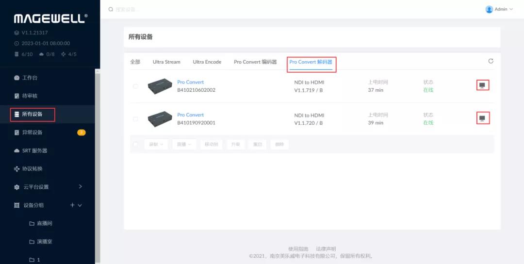 1.登錄Magewell Cloud的Web GUI,進入“SRT