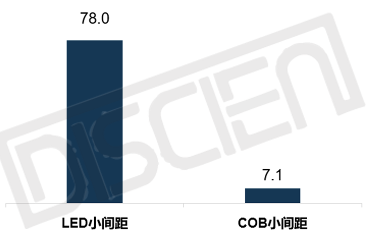 根據(jù)DISCIEN《2022H1中國大陸 LED小間距市場研究報告》數(shù)據(jù)統(tǒng)計,2022年上半年國內LED小間距市場銷售額近78個億,同比增長10.3%,其中COB市場達7.1個億,同比增長13%,COB市場的增長率明顯高于整體市場。