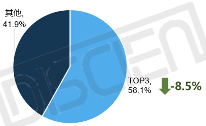分品牌:參與品牌持續(xù)增多,TOP3品牌集中度下降明顯,競爭加劇;