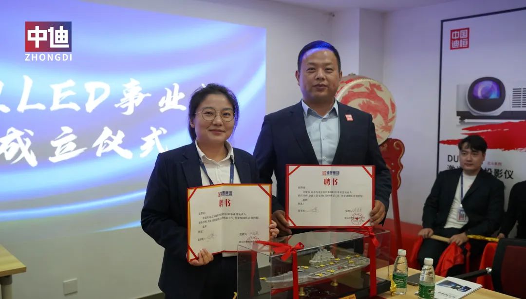 迪東集團董事長王洋總為中迪小間距LED事業部負責人許建英總頒發委任書。