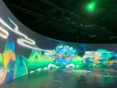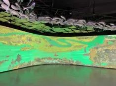 采用了日本CANON(佳能) 3LCOS 激光投影機WUX7000Z 12臺。墻面投影影像和各展項相互配合,打造出實物和投影影像的相互結合。講座式投影采用一臺WUX5800Z投影機,為游客詳細講解岳陽得生態綠色發展,和規劃方案。