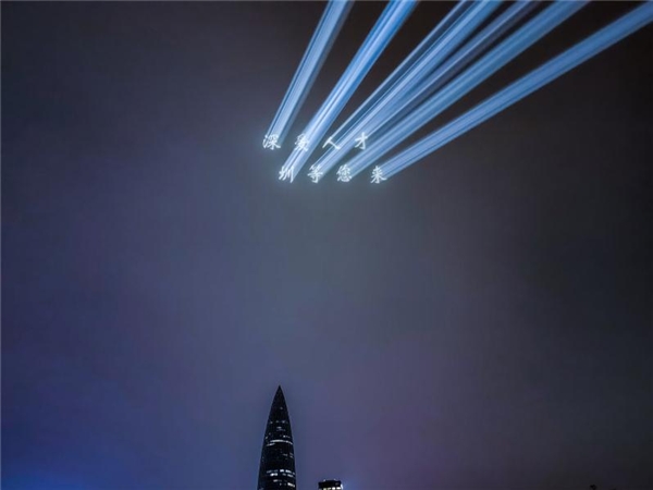 另外,光峰科技還在天空中打出“深愛人才,圳等您來"八個大字,這是深圳的人才口號,從口號可以看出深圳這座國際化大都市對人才的求賢若渴。
