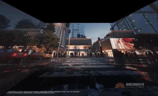 基于四折幕沉浸感的空間和內(nèi)容設(shè)計(jì),驕陽(yáng)創(chuàng)意科技希望讓觀看者仿佛置身于香榭麗大道,又或是親身漫步于奢華中。欣賞著這只影片的你,既是故事的主角,也是城市的主人。