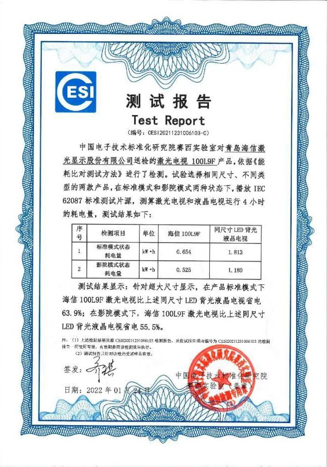 在產(chǎn)品標(biāo)準(zhǔn)模式下,激光電視比液晶電視省電63.9%;在影院模式下,激光電視比液晶電視省電55.5%,成為“官方認(rèn)證”的綠色低碳之選。