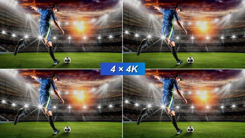 當然,要塑造“極致的視聽體驗”,營造身臨其境之感,除了畫面唯美高度清晰外,超大尺寸的展示更是必不可少。以往的普通高清視頻技術在超大尺寸的屏幕前則顯得力不從心,而這正是8K技術的用武之地。8K投影技術在500英寸以上的大畫面上,可以顯著提升效果,細節突出、纖毫畢現。超大尺寸plus 超強畫面,再搭配使用22.2多聲道立體音響,三維一體帶來全方位的沉浸式感受,讓幸福感提升不止一點點。然而,如果4K要達到同樣清晰度,則需要使用4臺4K投影機進行融合拼接。不僅前期及后期調試、維護麻煩,價格也會比單臺8K投影機更貴。