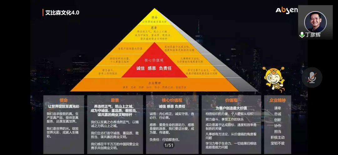 會議最后,艾比森董事長丁彥輝發(fā)表《慷慨正義、行穩(wěn)致遠》的主題演講,回顧了新冠疫情以來艾比森在國內(nèi)渠道建設、知識產(chǎn)權(quán)保護、人才培養(yǎng)與組織變革等方面的一系列關(guān)鍵舉措與成果。