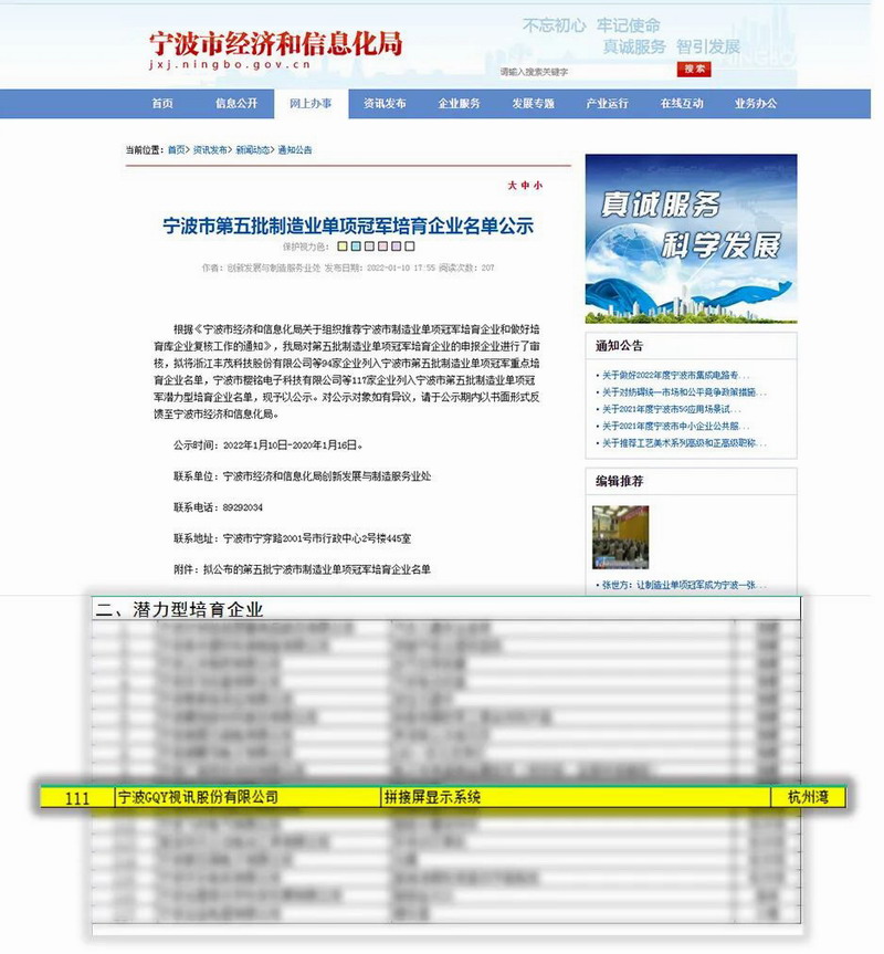 作為國內領先的以大屏視訊為核心的智能顯示整體解決方案提供商,GQY視訊立足市場發展趨勢和機遇,結合企業自身發展優勢,不斷優化組織結構,推動管理創新,積極探索發展新路徑,聚焦產業數字化、智能化,加快創新鏈、產業鏈、價值鏈、管理鏈轉型升級,不斷將企業與產品做精、做強、做專,獲得了寧波市政府的高度認可,榮獲多項榮譽。