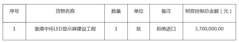 香港中環LED顯示屏建設工程 招標項目的潛在投標人應在深圳市福田區振興路3號建藝大廈16樓建星公司。獲取招標文件,并于2022年03月01日 14點30分(北京時間)前遞交投標文件。