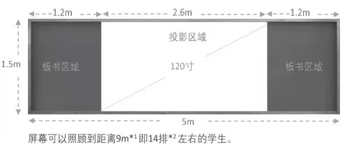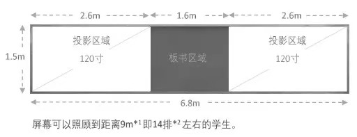 雙投影增加顯示面積,兩側學生都能看清。投影方案更靈活,收起幕布便可享超大書寫區域。配備紅外互動黑板,板書可隨寫隨投。