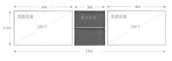 雙投影增加顯示面積,讓兩側學生都能看清。投影方案更靈活,收起幕布即享超大書寫區域。階梯教室(>100人)投影方案,看了很難不心動系列!