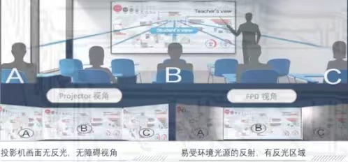 投影機畫面無反光,無障礙視角,讓兩側的學生也能清晰觀看。